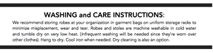 - Pricing is for a 25-robe minimum on initial order; 10-piece minimum on repeat orders.